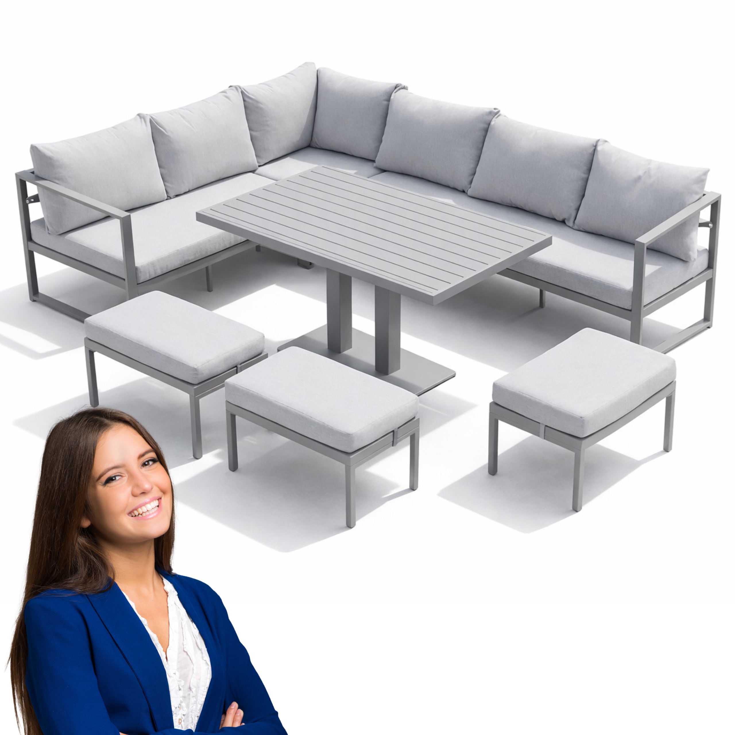 Zestaw został zaprojektowany tak, aby zaoferować maksymalną przestrzeń użytkową dla wielu osób, zachowując przy tym nowoczesną i proporcjonalną formę.